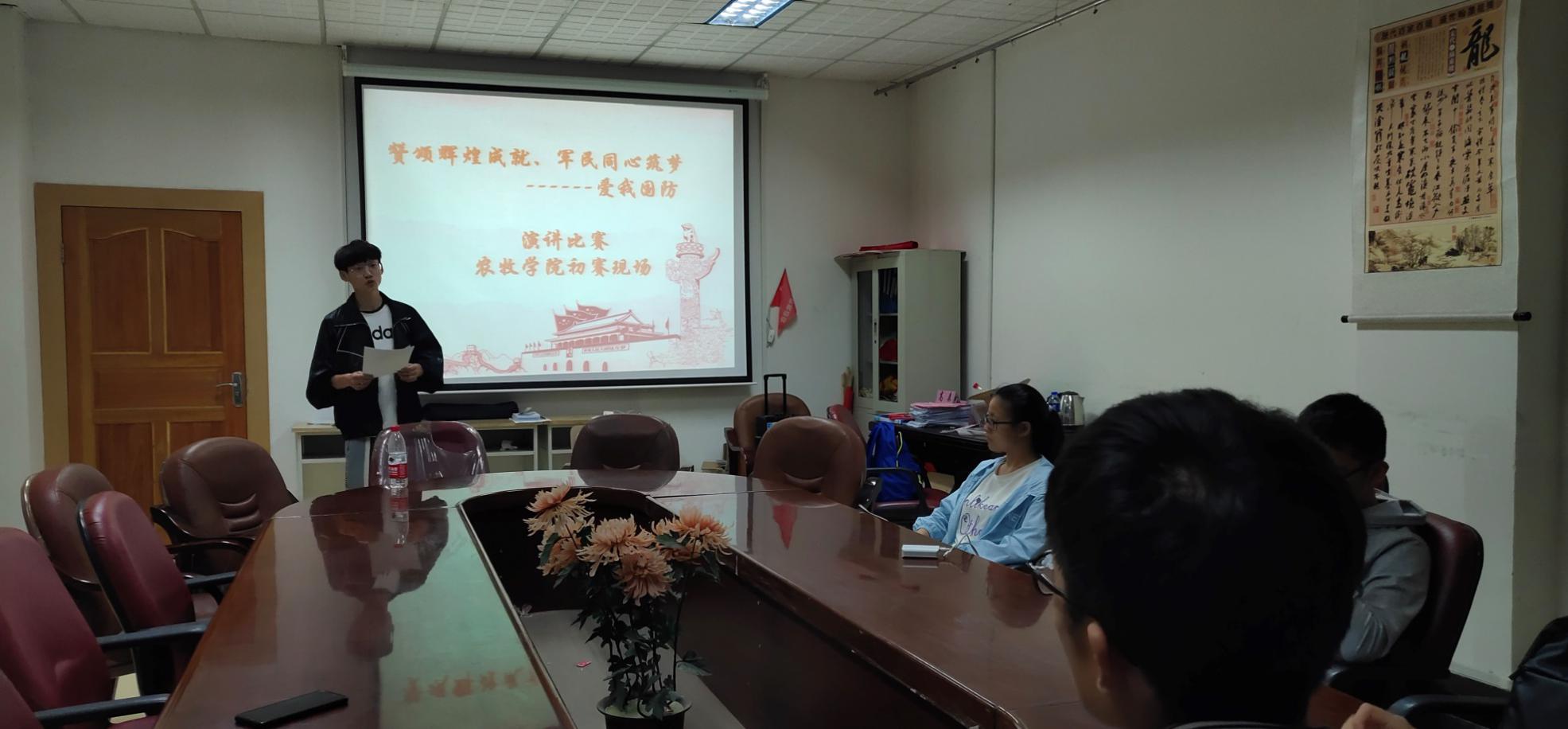 为庆祝中华人民共和国成立70周年,激励新时代大学生热爱国防、崇军尚武的热情,全面提高大学生的国防素养。9月6日18:00时,由成人影片网 学生会组织,在农牧楼二楼学生会议室举办了“爱我国防”大学生主题演讲大赛选拔赛。