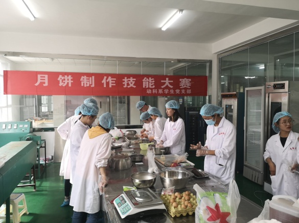 “不忘初心,牢记使命”,弘扬中华民族传统节日文化,加强专业理论和实践技能紧密结合的实训,于9月7日至8日,动物科学系学生党支部抓住即将到来的中秋佳节及温暖新生入校的契机,在食品科学与工程车间实习基地举办了一场别开生面的“月饼制作技能大赛”活动。全系共有33组100余名同学踊跃报名参赛。